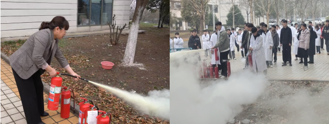 为提高广大师生员工消防安全意识和自防自救能力,防范和遏制火灾等安全事故发生,3月27日,我院在实验楼组织开展火灾疏散逃生演练及消防技能培训。我院党委书记谭胜兵,院长刘春丽,副书记汪涛,保卫处刘宝成及师生代表200余人参加活动。