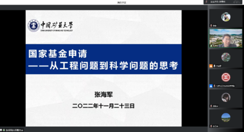 11月23日下午,yl6809永利邀请中国矿业大学yl6809永利院长张海军研究员进行国家自然科学基金线上指导报告。会议由刘春丽院长主持,全体教师参会并听取专家报告。