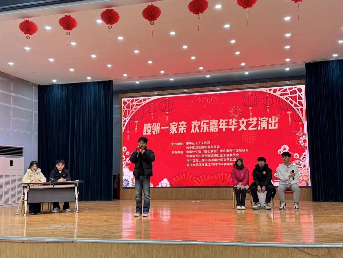 为营造“邻里一家亲”的和谐氛围,丰富社区居民的精神文化生活,2026年1月5日,我院志愿者走进枣庄市市中区工人文化宫,同社区工作人员共同开展了“邻里同心庆元旦,携手共展才艺欢”志愿服务活动。