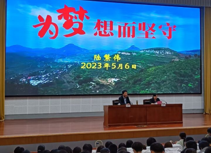 陆繁伟围绕自己的成长经历、教书故事以《为梦想而坚守》为题,以自身的教学故事为核心内容,为师范生们深情讲述什么是坚守的力量。陆繁伟回忆了从教36年的时光,结合自身的奋斗历程,以一个个生动感人的励志故事,朴实的语言,以及深厚的哲理,诠释了“为梦想而坚守”的丰富内涵。通过讲述自己身体力行,全力奉献山亭区,将濒临倒闭的中学发展成为全市优秀初中的故事,彰显了人民教师无私奉献,坚守教育事业的初心和使命。他勉励在场大学生,用心善待每一天,一定会成功,用持久的真爱去对待学生一定会赢得未来。