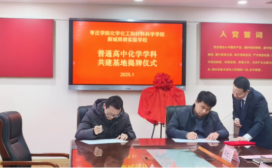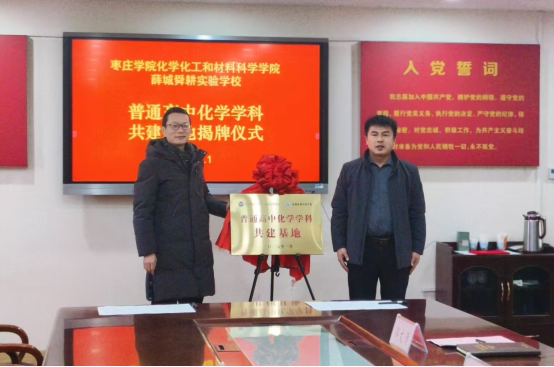 为充分发挥学校人才智力优势和教学资源条件,服务枣庄中学教育,深化合作办学,搭建优质教学实践平台,提升人才培养质量,1月8日上午,学院副院长马杰、化学专业负责人闫春燕赴枣庄市薛城区舜耕实验学校参加“永利集团yl6809校外实践教学基地”和“普通高中化学学科共建基地”的揭牌仪式。薛城区教体局教学研究中心主任郝东蕴、副主任燕传勇,舜耕实验学校校长郭文清、副校长王保才,以及舜耕实验学校化学教研室全体教师一同参加了揭牌仪式。王保才主持了揭牌仪式。