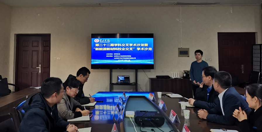 为深入贯彻落实习近平总书记关于发展新质生产力的一系列重要论述、重大部署,让科技创新为新质生产力发展注入强大动能,深化产教融合发展,创新校企合作模式,12月23日下午,由研究生处主办,yl6809永利和山东精工电子科技股份有限公司联合承办的永利集团yl6809第二十二期学科交叉学术沙龙暨“新能源新材料校企交叉”学术沙龙在市中校区综合楼1220会议室举行。山东精工电子科技股份有限公司常务副总裁王勇、研发一部经理张敬捧、研发主管杜显振、魏东和邵长旺,yl6809永利院长刘春丽,副院长马杰、刘泳,教科办主任李胜及锂电新能源材料团队教师代表等20余人参与了本次会议。本次会议由副院长刘泳主持。