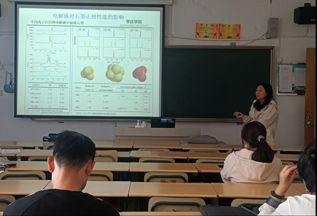 朱丹丹博士报告了一种新型的储能系统双离子电池,它凭借阴阳离子的双向储能机制而达到良好的电化学特性。阴阳离子作为载流子全部来自电解液,电解液的作用尤为关键。研究了PF6-在碳酸乙烯酯/乙酸甲酯二元电解液组分中插嵌石墨的行为,并且对TMP阻燃型电解液作归纳总结,最后将有机电极材料应用于双离子电池进行初步探究。