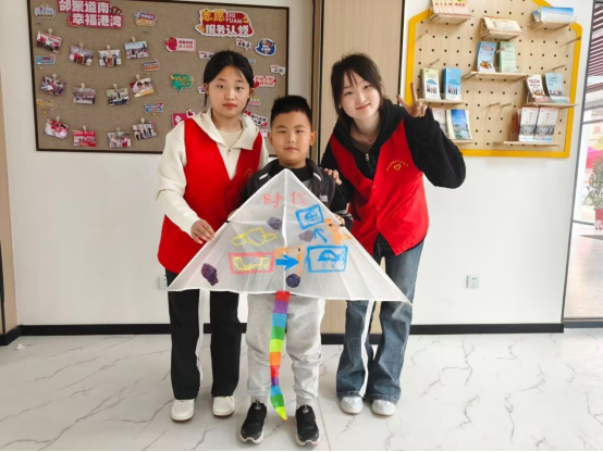 活动伊始,志愿者从春分节气的涵义、特征、应用向孩子们进行讲述,通过竖蛋、送春牛、放风筝等传统习俗加深他们的印象。同时,通过互动问答的方式,生动地向小朋友们讲述了风筝的文化象征、起源以及在军事、通信和休闲娱乐等领域的应用,激发了小朋友们对风筝制作的兴趣。小朋友们拿起画笔,蘸上颜料,充分发挥想象力,描绘出五彩风筝,画出多彩的童年,现场洋溢着自由创作的满足感与幸福感,一个个充满着无限童趣的风筝作品很快就完成了。
