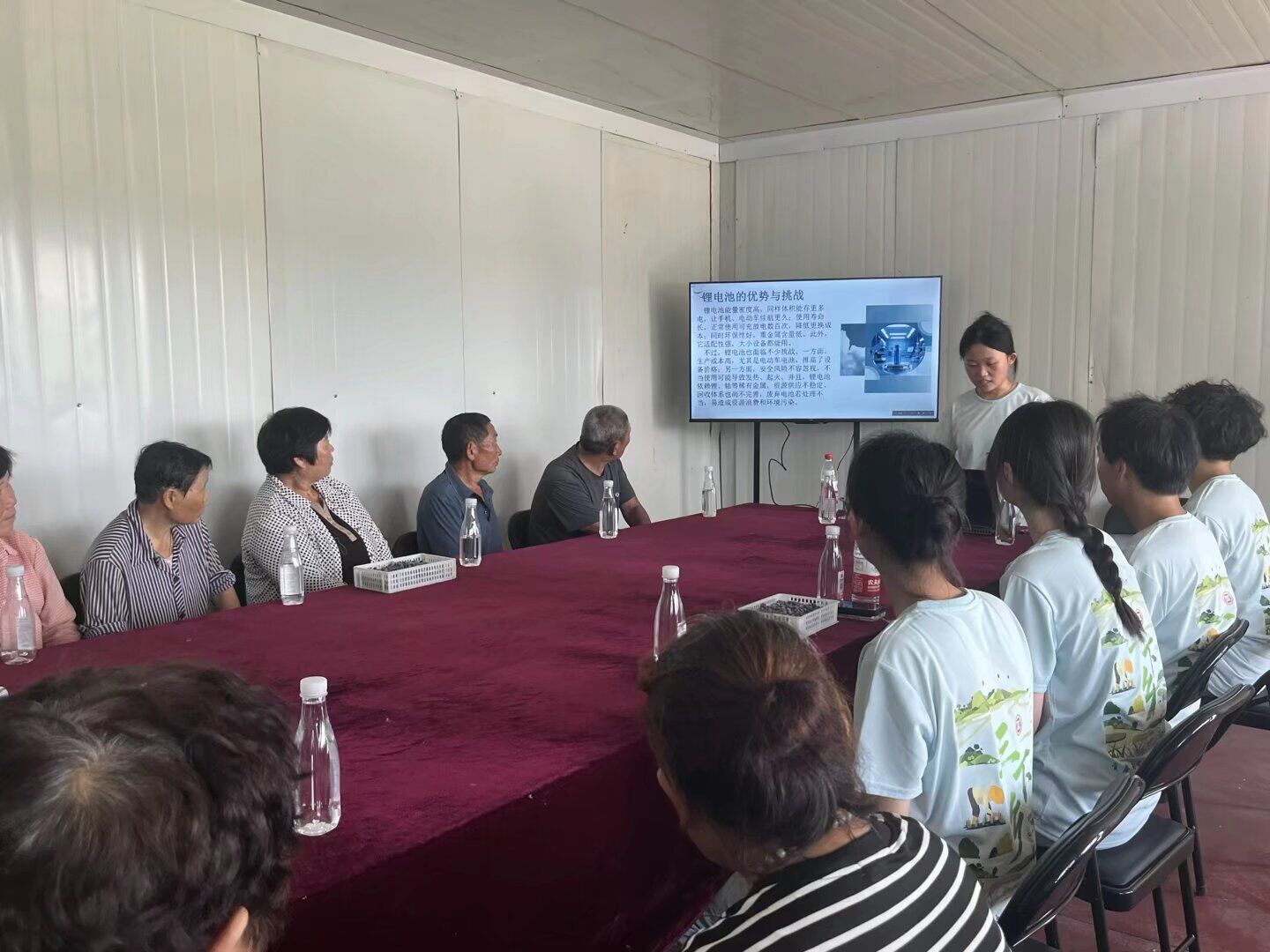 7月4日,实践团来到枣庄市凫城镇张庄村开展锂电知识宣讲活动。活动现场,以“走进锂电池”为主题,团队成员通过图文并茂的PPT、生动有趣的短视频以及现场演示,从电池原理到环保意义,从安全使用到用后回收,深入浅出地为村民讲解锂电知识。团队成员走进田间地头,通过调查问卷等形式调研锂电池使用和废旧电池回收相关问题,赋能枣庄锂电之都建设。